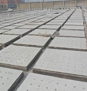 混凝土濾板是水處理工藝中關鍵裝置,在濾池中起到承載濾料層過濾和反沖洗配水(氣)的雙重作用。濾板的平整度和精度直接關系到水廠、污水廠的濾后水質、水量及運行的長期效益。傳統(tǒng)的濾池配水系統(tǒng)過濾和反沖洗時阻力大,配水不均勻、死水區(qū)多、濾料易板結、積泥,同時由于局部沖洗強度造成承托層松動,出現(xiàn)漏砂等不良后果。